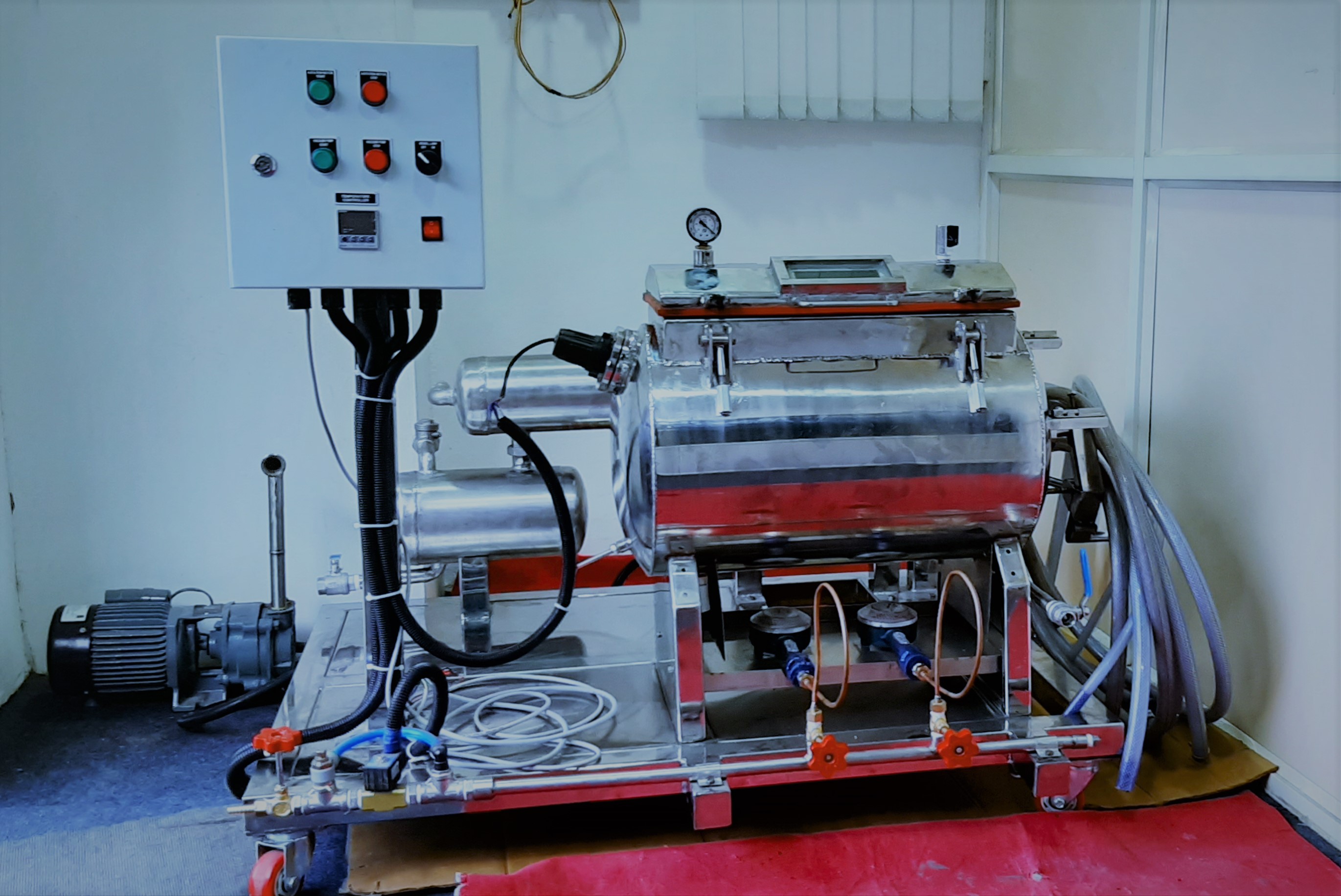 2. The processed herb is then fed into extractor into which solvent/water is fed. Once the extractor is heated, the critical components from herb will dissolved into water or solvent.